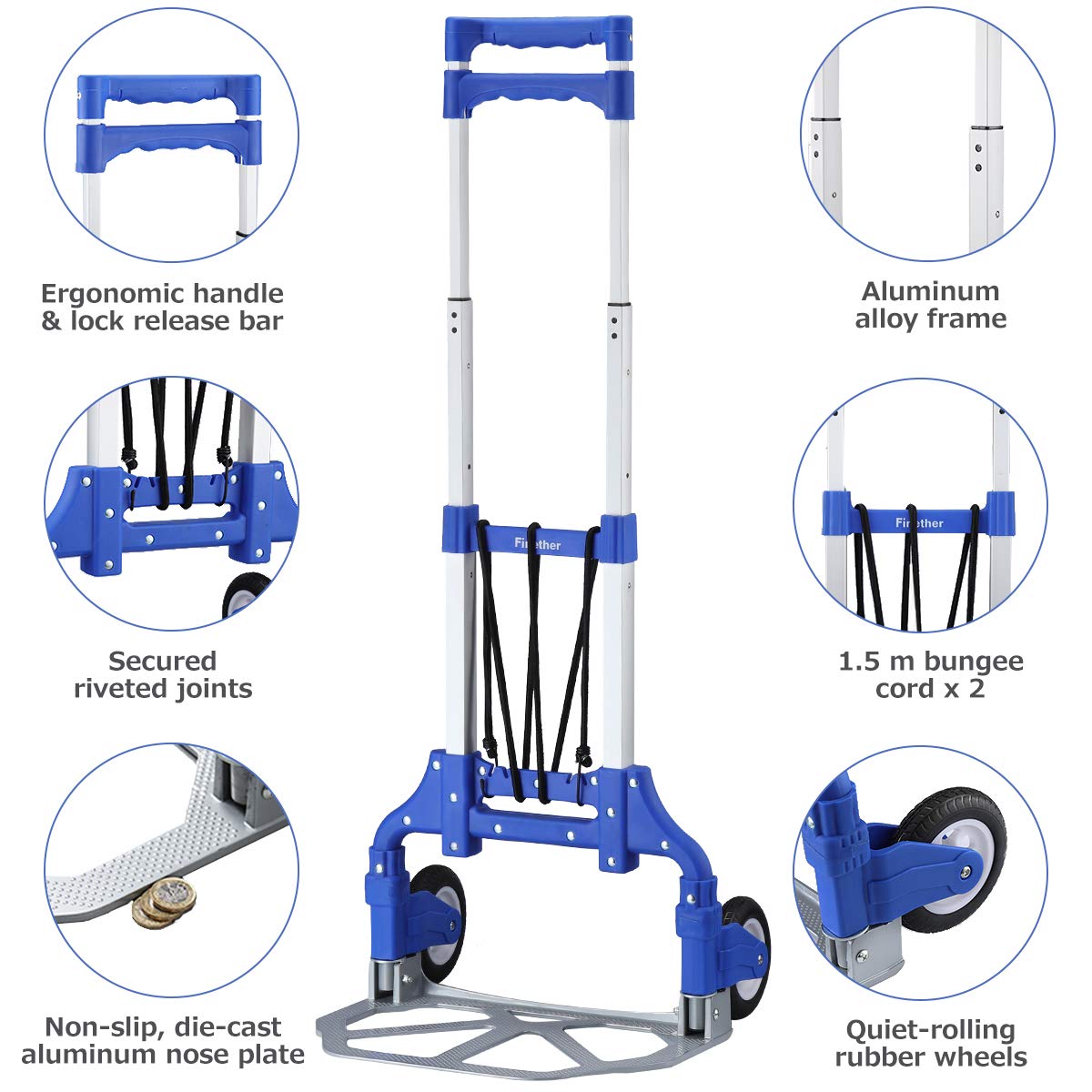 Carrello a Mano Pieghevole Finether da Trasporto in Alluminio Blue