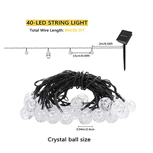 - ✨【40 LED a Energia Solare】Solar String Lights Batteria Ni-MH ricaricabile da 1,2V 800mAh integrata, queste luci a stringa solare creano un'atmosfera di illuminazione romantica e fantastica di notte, perfetta per decorazioni interne ed esterne.