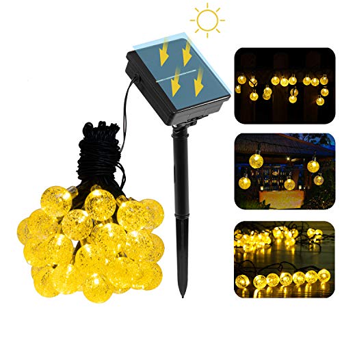Colore:Bianco CaldoSUNNOW LED Solar String Lights --- Crea un'atmosfera calda, dolce e romantica, Rendi la tua casa più unica. Caratteristiche Impermeabile: Le lampadine a sfera di cristallo delle luci solari sono progettate con funzione impermeabile, possono funzionare come al solito nei giorni di pioggia. Conversione di energia efficiente: con il sensore di super luce nel pannello solare, che è molto più di altre luci a stringa solare sul mercato. Luce intensa di notte, chiusura automatica durante il giorno. Eccellenti luci solari per la decorazione: Decora la tua parete, finestra, porta, pavimento, erba, albero, palo o edificio, ideale per la decorazione delle vacanze, recinto di fiori, patio, matrimonio, festa estiva, Natale. Specificazione 1. Pannello solare: 2V 100 mA 2. Sorgente luminosa: a energia solare 3. Numero di luci: 40 LEDs 4. Lunghezza tra due luci: 15cm / 6inch 5. Lunghezza totale: 8M / 26.3FT 6. Batterie Ni-Mh: dimensioni AAA, 1200 mAh 7. Tempo di ricarica: 6-8 ore 8. Orario di lavoro: acceso fisso 8-12 ore; Modalità lampeggianti 10-14 ore. (A seconda dell'ambiente e della temperatura.) 9. Condizioni di lavoro: all'aperto, può adattarsi alle condizioni meteorologiche piovose Appunti - Si suggerisce di caricare completamente il pannello solare per 8-10 ore al primo utilizzo. - Assicurarsi che l'interruttore delle luci sia su "ON"; in caso contrario, la batteria non verrà caricata. - Leggere il Manuale dell'utente incluso prima dell'uso. Il pacchetto include 1 x 40 LED Luci a sfera di cristallo stringa solare 1 x Pannello solare con supporto 1 x Manuale utente