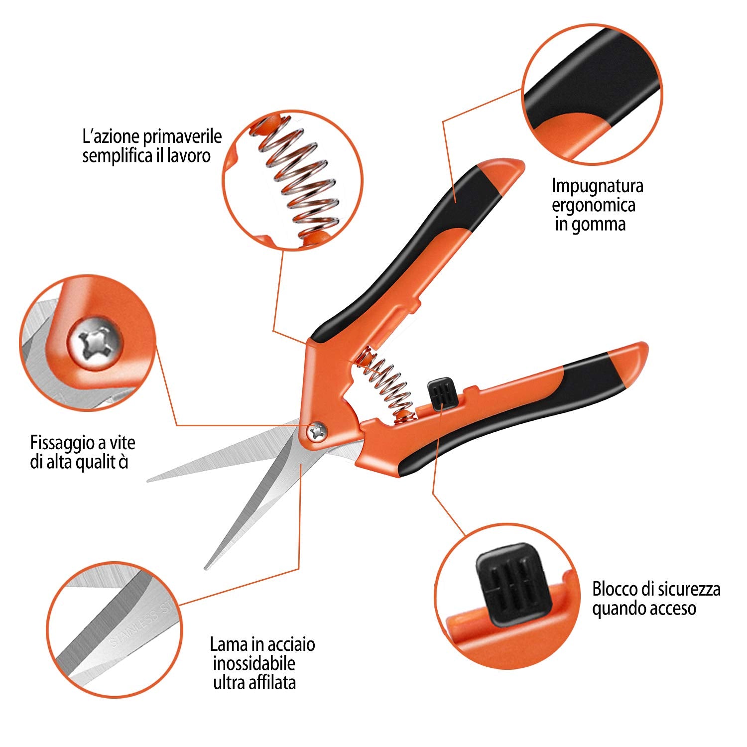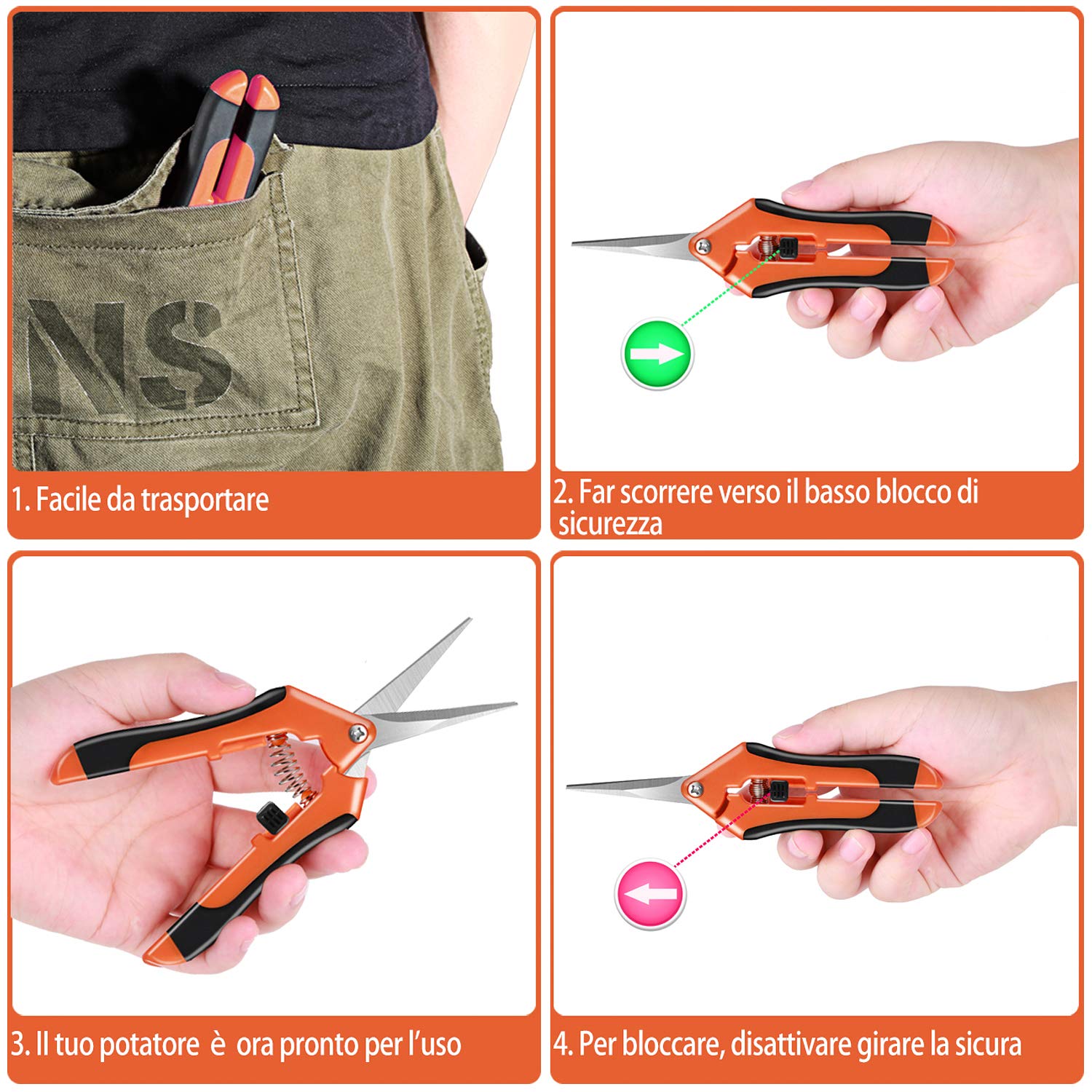 - 3.【Funzionamento facile e sicuro】: questi tagli sono dotati di un meccanismo di bloccaggio sicuro che mantiene le lame protette e chiuse quando non vengono utilizzate. Cura: pulire le lame e dare olio dopo ogni utilizzo.
