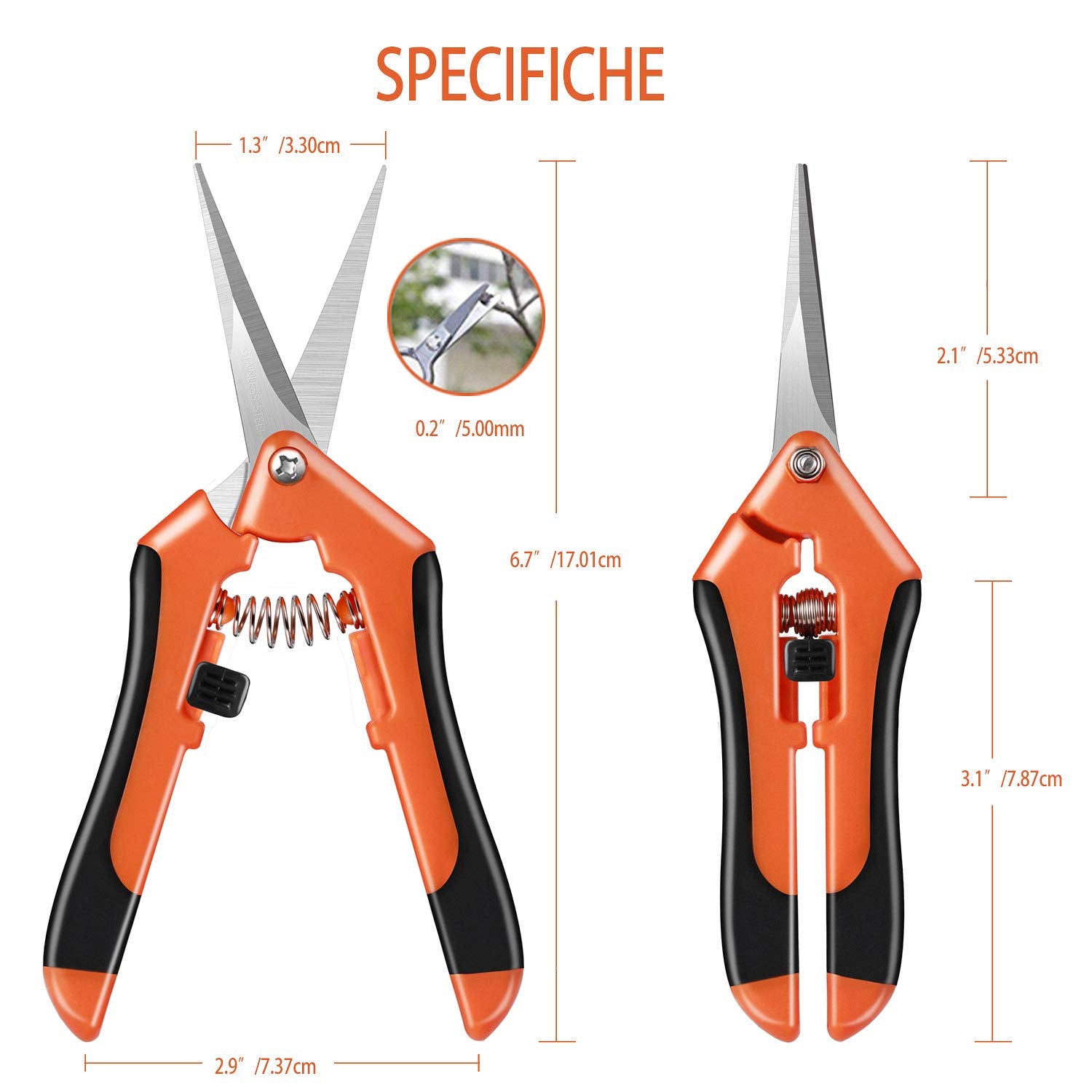 - 4.【Crea tagli precisi e superficie di taglio liscia】: con questi micro-punte e il sistema di chiusura a una mano ti permettono di tagliare tra piccole piante esattamente e facilmente senza danneggiare gli altri steli e rami vitali delle altre tue piante. La superficie di taglio dei rami è molto liscia senza strappi irregolari. Lunghezza totale: 17 mm, lunghezza lama: 55 mm, peso: 68 g.