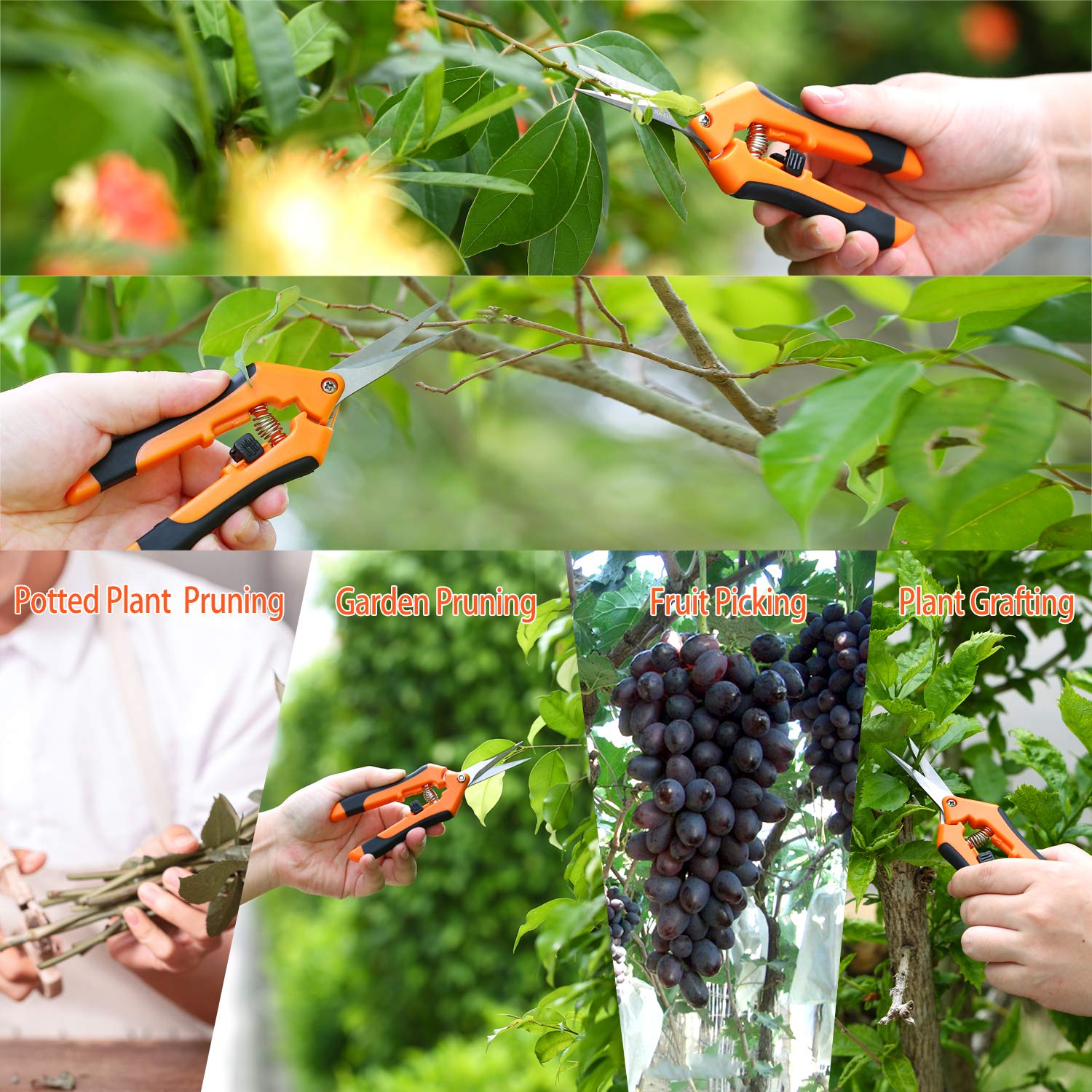 - 5.【Ampiamente Usato】: perfetto per potare le piante in vaso, la potatura del giardino, la raccolta della frutta, l'innesto di piante e altre esigenze di taglio nel giardino e nella serra come l'ikebana, la rosa. È una necessità per i fioristi. Puoi goderti il giardinaggio con la tua famiglia.