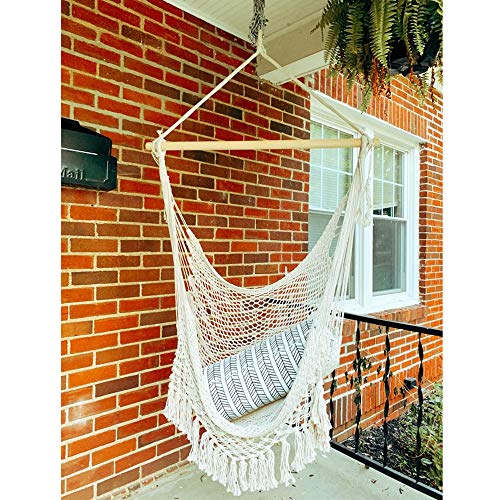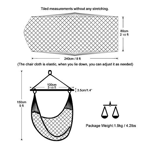 - Estremamente Confortevole.Realizzato a mano con corde di cotone comode e resistenti dell'intera sedia promettono divertimento e resistenza. La barra di sollevamento larga 90 cm di lunghezza offre un ampio spazio per le spalle.Il poggiapiedi extra lungo integrato per allungarsi davvero. il tuo perfetto compagno estivo. Il materiale è così morbido e delicato sulla pelle che anche quando è vestito in modo sottile, sdraiarsi su questa sedia amaca è estremamente comodo.