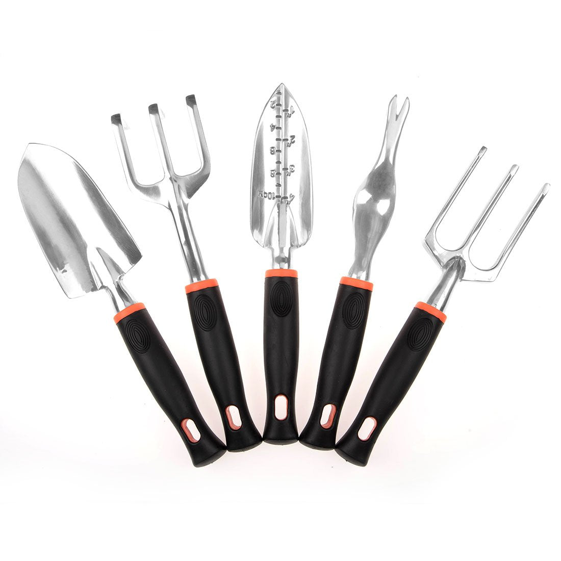 - Ideale strumento di giardinaggio set-Heavy Duty 5 pezzi di giardinaggio strumento mano include pala spatola, Zappa rastrello, sarchiatrice, vanga, coltivatore; perfetto per una varietà di compiti tra cui scavo, trapianto, sarchiatura, aerare e altro ancora.