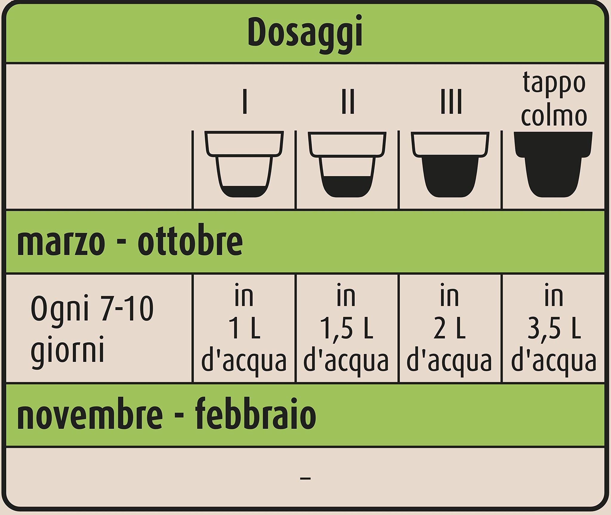 - Pratico tappo dosatore con 3 livelli per un dosaggio preciso e senza sprechi