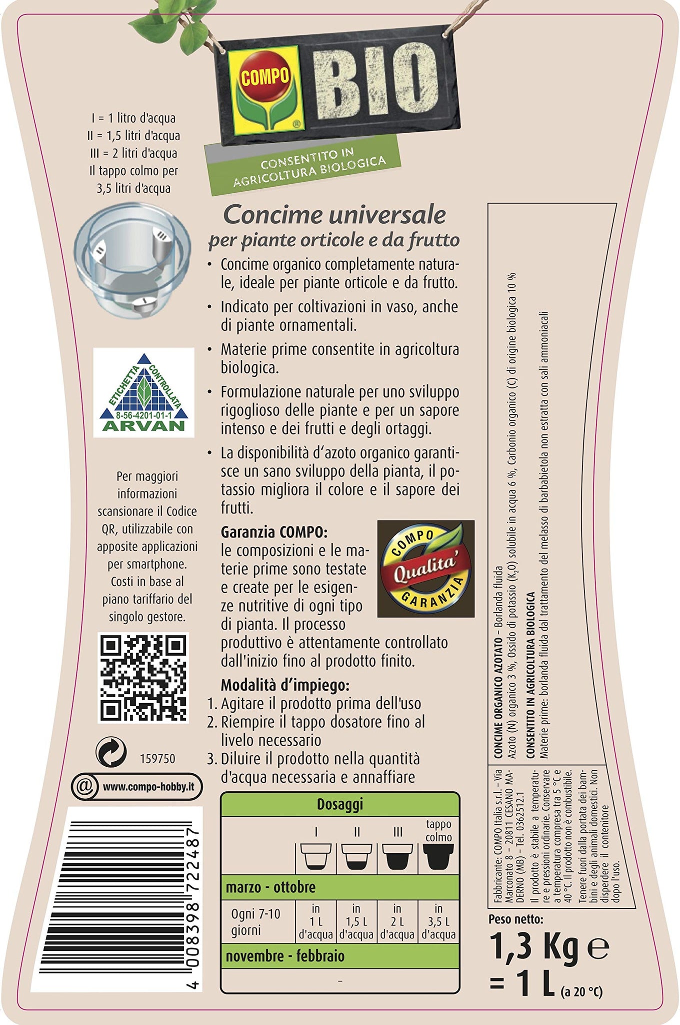 - Concime liquido universale completamente naturale specifico per piante orticole e da frutto in vaso, da balcone, terrazzo e in piena terra
