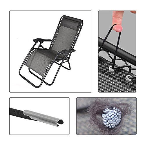 Cordini di ricambio universali per sedie a gravità zero (4 cordi), Keten, lacci di ricambio per sedie a gravità zero e strumento di riparazione reclinabile per sedia da lounge, sedia elastica (nero)