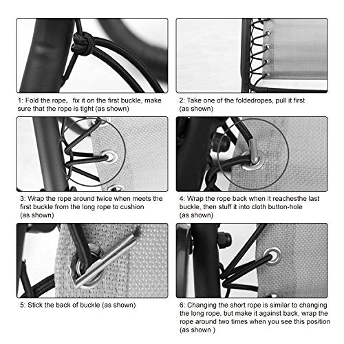 - La confezione include: 2 cordicelle lunghe (86'' /2,2m) per poggiapiedi e due corte (59''/ 1,5m) per lo schienale della sdraio reclinabile.