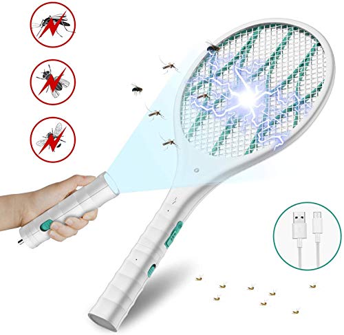 DOUHE Bianca Racchetta Zanzare Elettrica, USB Ricaricabile bianco