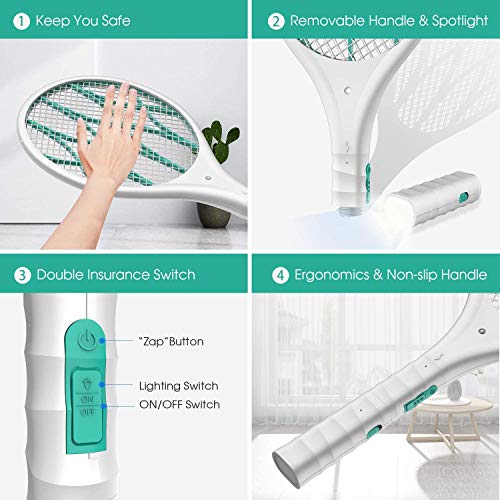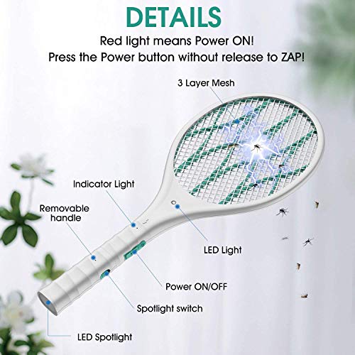 - Grande potenza: sbarazzati del tuo vecchio scacciamosche, dotato di una tensione ultra alta di 4000 volt, e può facilmente uccidere gli insetti una volta a contatto con la rete elettrica