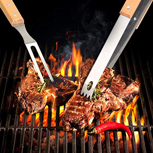 - ★ QUALITÀ PREMIUM - Questo squisito set di utensili per griglia è realizzato in robusto acciaio inossidabile e le maniglie sono in legno di acacia sostenibile, estremamente resistente al calore e robusto. Sarai sorpreso di quanto sia robusto e comodo ogni strumento nelle tue mani.