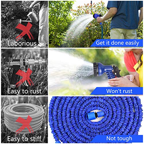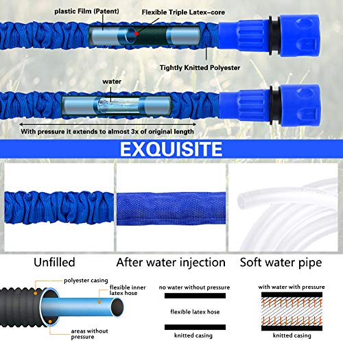 - 【Design Flessibile】Il tubo del tubo dell'acqua può essere espanso a 100FT (espandere tre volte la sua lunghezza originale). Quando il tubo dell'acqua è collegato all'acqua, il tubo della pressione dell'acqua si espande rapidamente fino a tre volte la sua lunghezza e recupera la sua lunghezza iniziale in pochi minuti quando l'acqua viene scaricata. Leggero, flessibile, abbastanza lungo, salvaspazio e comodo da trasportare.