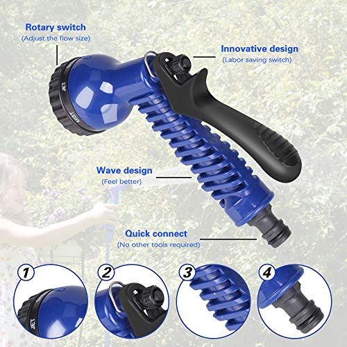 - 【8 Modalità di Irrorazione Dell'acqua】Tubo flessibile con 8 funzioni di modalità spray, getto a colonna, getto pieno, getto a cono, getto centrale, getto a nebbia, getto a doccia e getto a ventaglio. 8 modalità regolabili per esigenze di irrigazione versatili. Selezionare la modalità desiderata semplicemente ruotando la ruota dell'ugello.