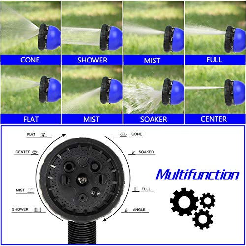 • 【8 Modalità di Irrorazione Dell'acqua】Tubo flessibile con 8 funzioni di modalità spray, getto a colonna, getto pieno, getto a cono, getto centrale, getto a nebbia, getto a doccia e getto a ventaglio. 8 modalità regolabili per esigenze di irrigazione versatili. Selezionare la modalità desiderata semplicemente ruotando la ruota dell'ugello.