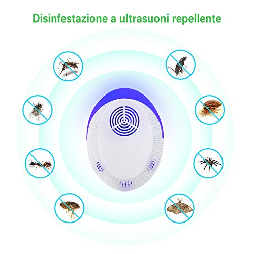 - 【Sicuro per bambini e animali domestici】: può scacciare insetti, topi, scarafaggi, formiche e ragni, roditori, ecc. L'orecchio non può rilevare il suono, quindi non interferisce o irrita le persone. Non devi uccidere le zanzare con sostanze chimiche e ripulire i loro resti in seguito.