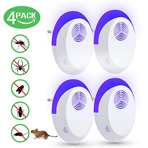 Fenvella Repellente Ultrasuoni, Versione Aggiornata di Antizanzare Ultrasuoni, Efficace Contro Topi,Ratti,Mosche,Zanzare,Ragni,Scarafaggi, Sicuro e Non Tossico(4 Pack)