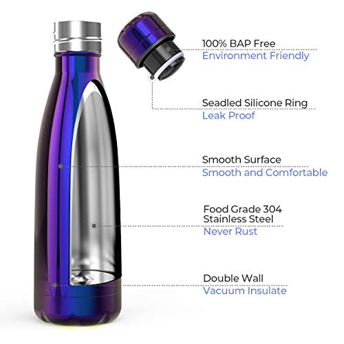 • 【FINO A 12 ORE DI ISOLAMENTO】- Termica Bottiglia d'Acqua con un doppio strato d'isolamento con tappo con guarnizione, che mantiene i tuoi drinks caldi o freddi fino a dodici ore
