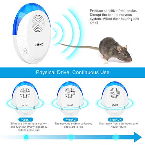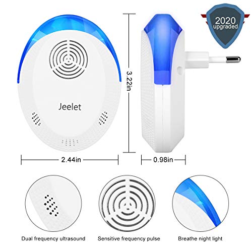 JeeLet Repellente ultrasuoni, Repellente per Insetti Elettrico,per Topi, Anti Topi Ratti Zanzare Insetti Ragni Parassiti Scarafaggi respirazione Luce Notturna,4pack