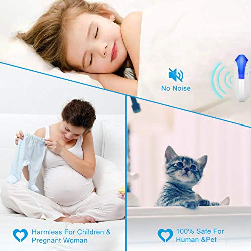 - L'ultima tecnologia della quinta generazione: questa repellente ultrasuoni progettata utilizzando la tecnologia più recente e utilizza onde ultrasoniche a doppia frequenza per generare impulsi di frequenza sensibili per la maggior parte degli insetti volanti e striscianti. È efficace per zanzare, topi, ragni, scarafaggi, roditori, mosche, formiche, pulci e altri parassiti. L'estate sta arrivando, usa questa unità a ultrasuoni, evita gli insetti.