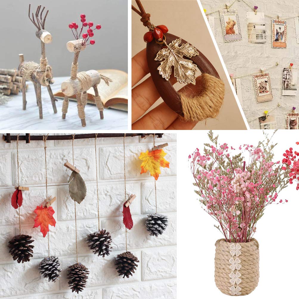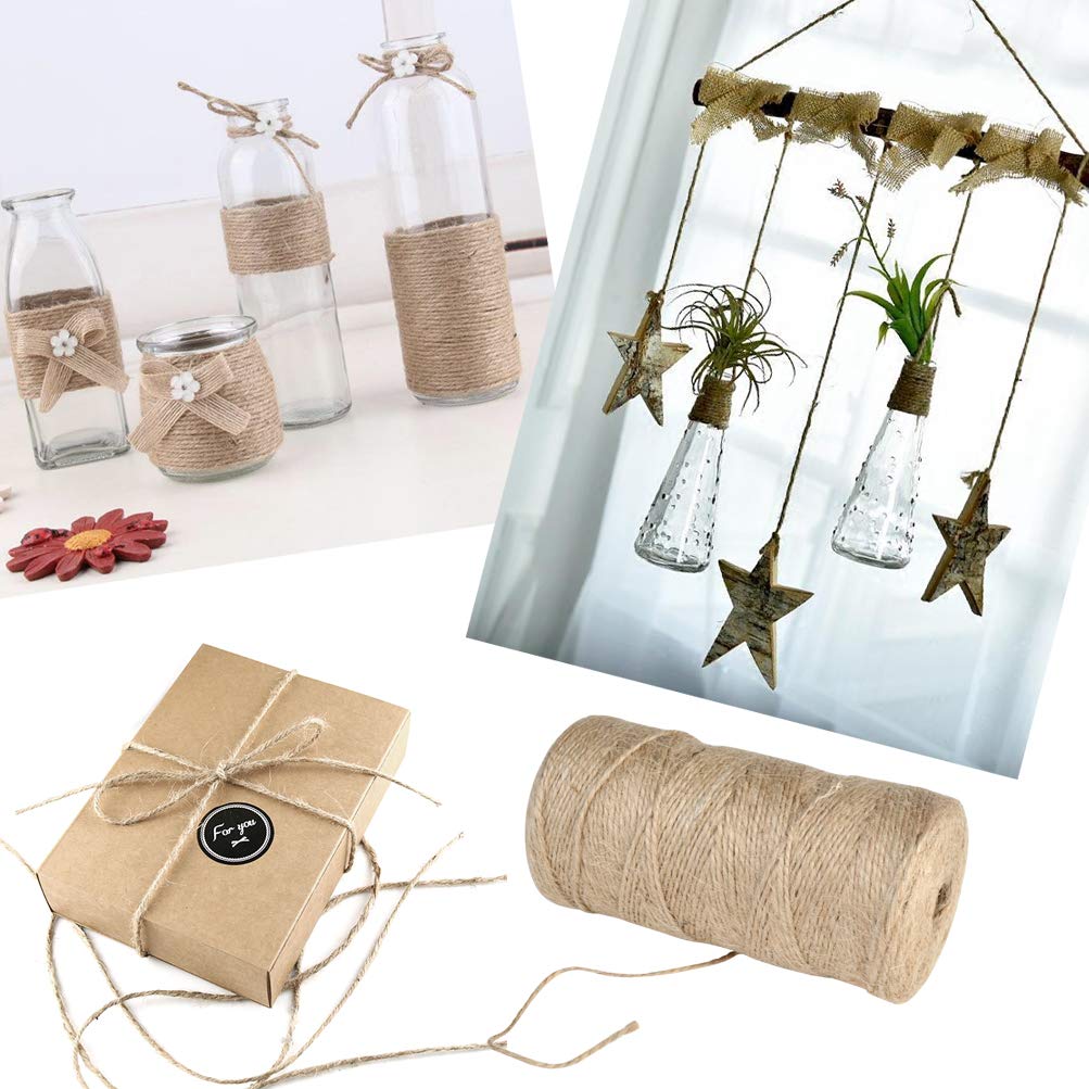 • Ottimo per Il Fai Da Te - La corda di iuta può essere utilizzata per tessere o avvolgere bicchieri, bottiglie di vino, vasi di muratore, pacchetti pratici, carta da regalo o nastro, bomboniere o bomboniere.