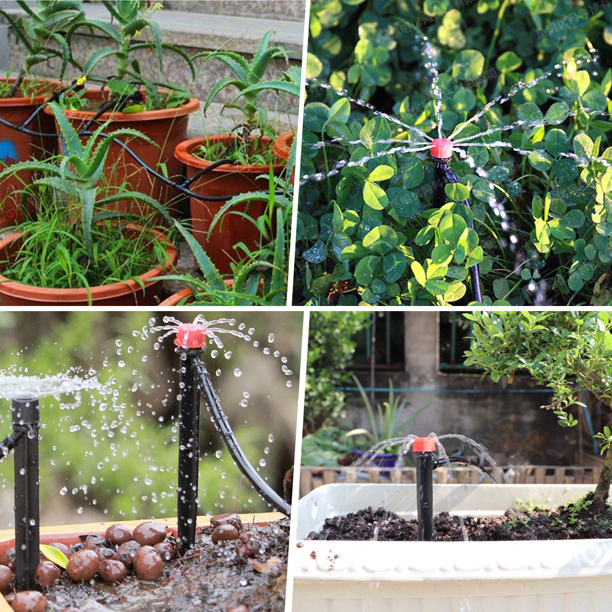 - 【Ideale:】 il sistema riduce anche il consumo di acqua del 70% rispetto agli sprinkler convenzionali. Può essere utilizzato per l'atomizzazione, l'irrigazione del prato, il giardinaggio, l'irrigazione vegetale, il raffreddamento del tetto, gli strumenti per il vassoio dei bambini, i fiori d'innaffiatura, ecc.