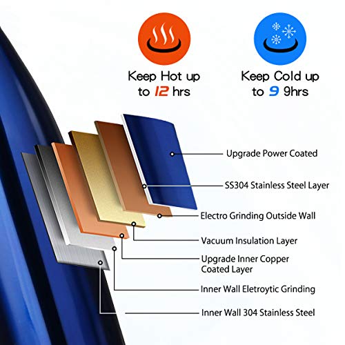 - ☀☀ DOPPIO ISOLAMENTO SOTTOVUOTO: Di solito può mantenere l'acqua fredda per 9 ore e l'acqua calda per 12 ore. Anche se la bottiglia d'acqua è piena di acqua ghiacciata, non ci saranno gocce d'acqua sulla bottiglia. Portare con sé acqua fredda o caffè caldo al lavoro e in campi sportivi o escursionistici e altre attività all'aperto.