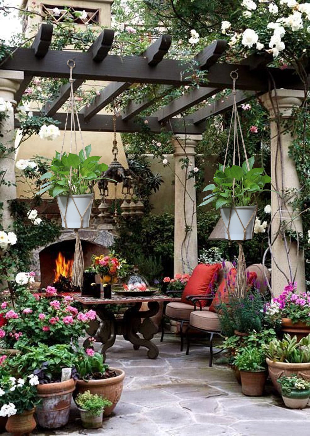 - I 5 ganci e anelli in metallo consentono di appendere le tue piante facilmente su soffitto, parete, patio, portico, terrazza, finestra, corridoi, decorare la casa, il balcone e il giardino.