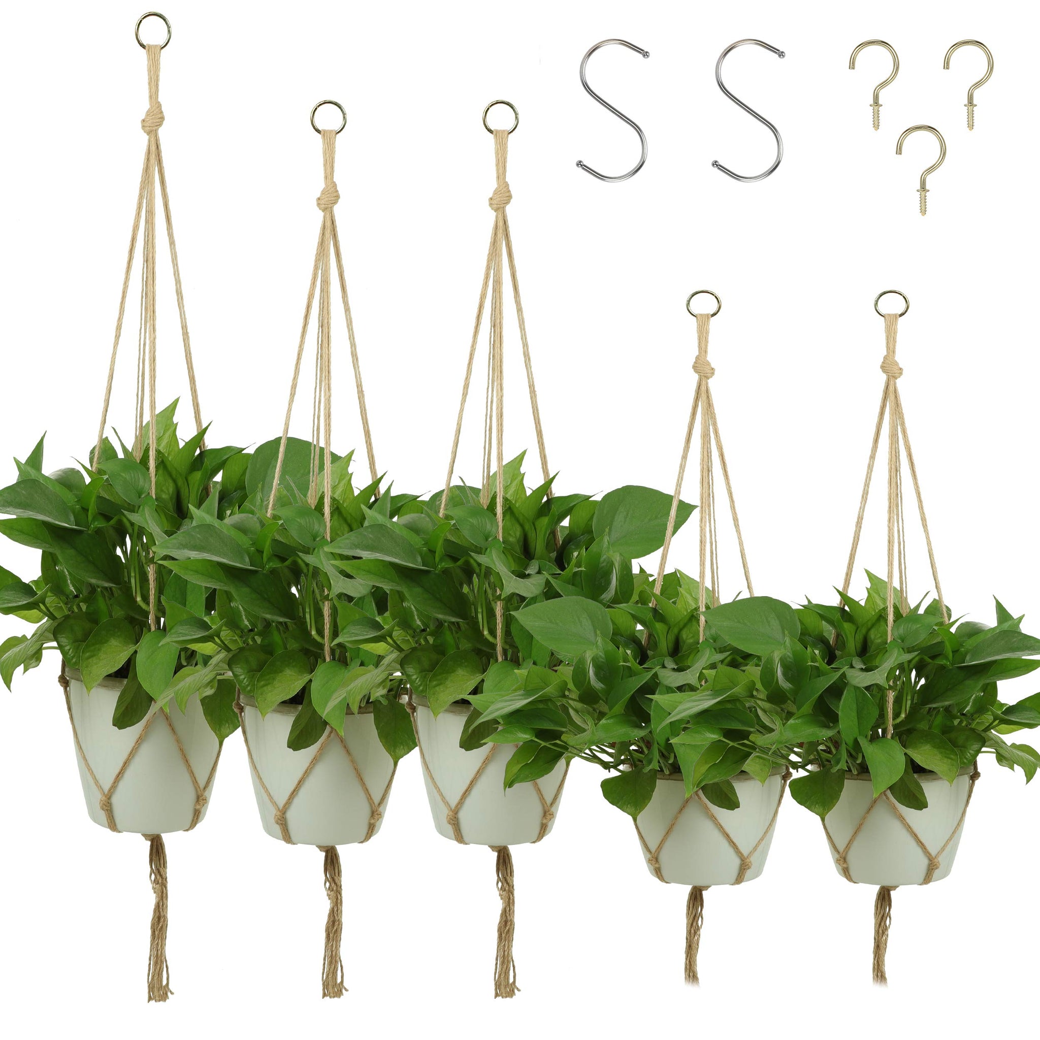 KissDate - Confezione da 5 portavasi da appendere in corda di iuta, a 4 bracci, per vasi di fiori e piante, decorazioni per interni ed esterni,1 pezzo da 120 cm, 2 pezzi da 105 cm, 2 pezzi da 90 cm