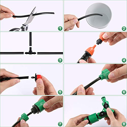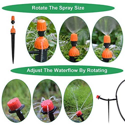 - 【Risparmio energetico e protezione ambientale】Sistema irrigazione potrebbe fornire tutto il necessario per applicare tubi di lancio nelle aree del giardino e spruzzare acqua in piante ampiamente distribuite. L'impianto di irrigazione a goccia personalizzato risparmia fino al 70% di risparmio idrico rispetto all'irrigazione manuale