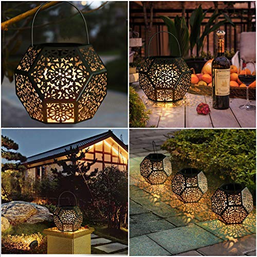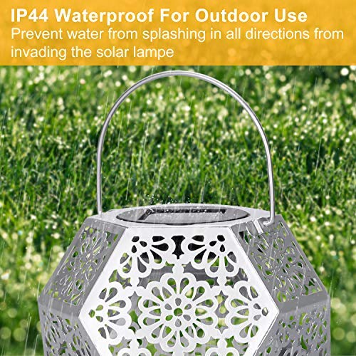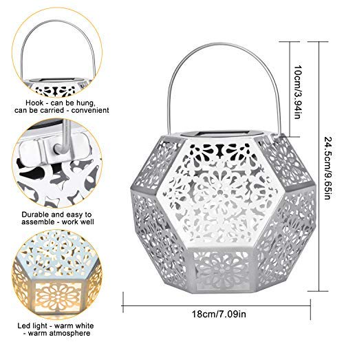 - 【BELLA DECORAZIONE, REGALO IDEALE】 Lanterna solare da giardino a forma di diamante per esterni: circa 18.3* 18.3* 15. Luce argentata con ganci, è perfetta per arredare il tuo giardino, prato o patio. Lanterna solare led a energia solare hanno un design cavo, ei riflessi dei motivi sono molto belli, creando un'atmosfera romantica che aggiunge un'atmosfera calda al tuo cortile, veranda, spazio all'aperto, feste, festival, ecc