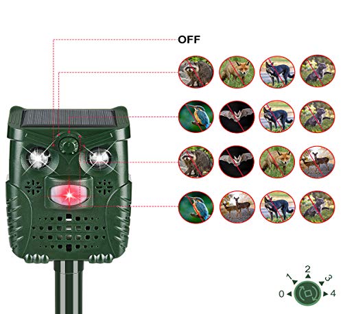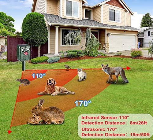 - 【Umano e rispettoso dell'ambiente】 - L'audio ad ultrasuoni ad alta sensibilità incorporato, il rilevatore a infrarossi e il flash LED, quando l'animale entra nell'area del rilevatore a infrarossi, attiva l'ecografia del gatto per emettere un'ecografia di frequenza variabile, che consente all'animale di fuggire dall'area. 4 diverse frequenze con maggiore sensibilità. Utilizza anche suoni e potenti flash per guidare gli animali.