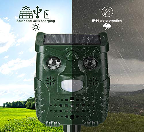 - 【Portatile e facile da usare】 Puoi semplicemente spingere il repellente per animali sul pavimento o appenderlo a una parete. Perfetto per patio, patio, passi carrai, garage, soffitte, portici, barche, giardini, fattorie, stagni, ecc.