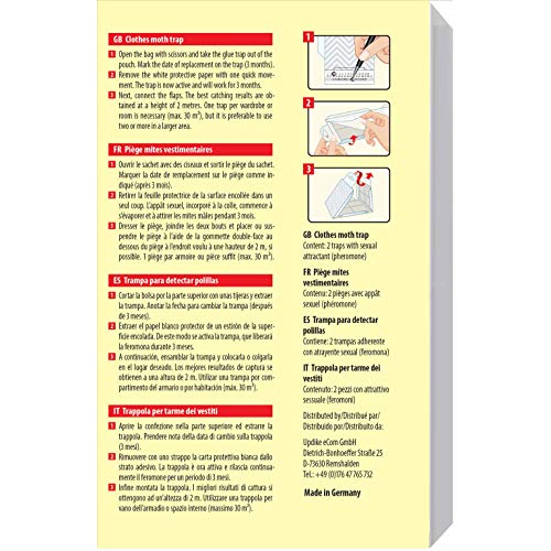 - Trappola per tarme dei vestiti a base di feromone senza odore. Ognuna delle 6 trappole funziona fino a 3 mesi