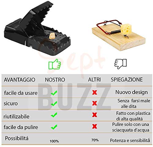 Potenti Trappole A Scatto Per Topi 2° Generazione Rinforzata topicida Con E-Book Gratis Riutilizzabile Anti Roditori Garanzia A Vita