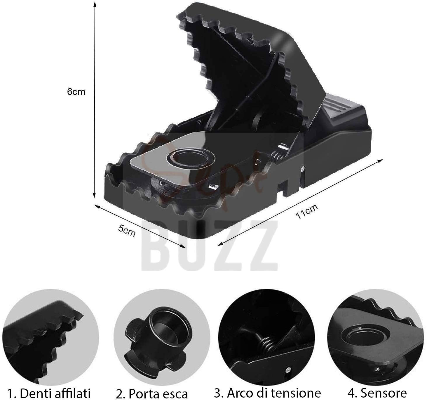 usato come trappola per topi da interno oppure per trappola per talpe da esterno,