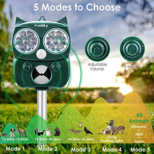 Repellente Gatti, Homtiky Repellente Ultrasuoni Energia Solare IP66 Impermeabile a Frequenza Regolabile per Allontanare Animali 5 Modalità Regolabile Repeller Animali Ultrasound Repellente per Animali