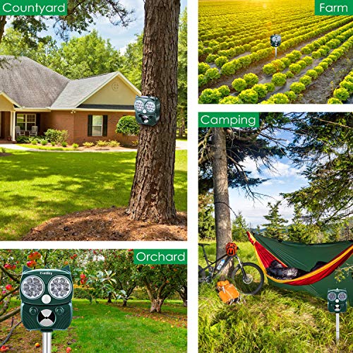 • 【Protezione ad Ultrasuoni】Repellente per Animali serve solo per guidare animali senza sostanze chimiche e per espellere l'intrusione accidentale degli animali inviando onde ultrasoniche.Funziona con ultrasuoni e torce a LED per cani, gatti, martore, procioni, topi, uccelli, volpi, roditori, martore, cervi. Il prodotto utilizza il principio della rilevazione a infrarossi, nessun danno per i piccoli animali e il corpo umano.