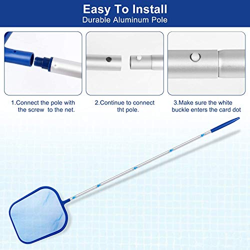 - Pulizia efficace – peso leggero, facile da trasportare e usare, resistente, rete a rete sottile e struttura in plastica di alta qualità offrono un eccellente effetto scrematura, anche piccole particelle di detriti possono essere catturate nella rete, che possono aiutare a catturare molti detriti più velocemente; mantenere la piscina pulita e priva di detriti in pochi minuti