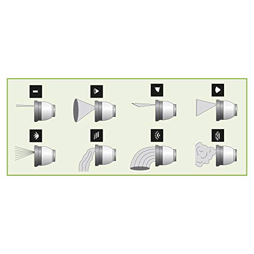 Nome stile:MultigettoDescrizionePistola d'irrigazione 100 % metallo. Corpo in metallo laccato con rivestimento plastico. 8 diverse regolazioni di getto tramite la testina rotante: getto, cono, schiuma, getto sottile, piatto orizzontale, piatto verticale e a pioggia. Attacco rapido 100 % ottone. Sistema di bloccaggio della leva.Contenuto della confezionePistola multigetto