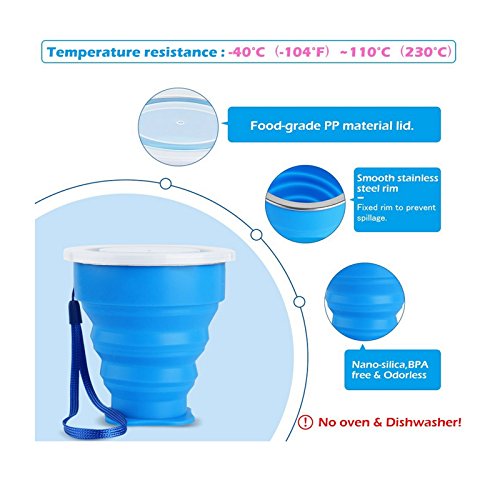 - Senza BPA, igienico, realizzato in 100% livello alimentare silicone e facile da pulire.La tazza può essere riutilizzata, protezione ambientale a basso tenore di carbonio. non più sprecato carta Bicchieri e coperchi di plastica.