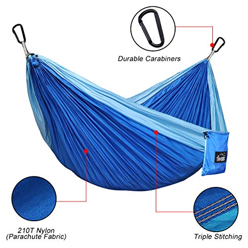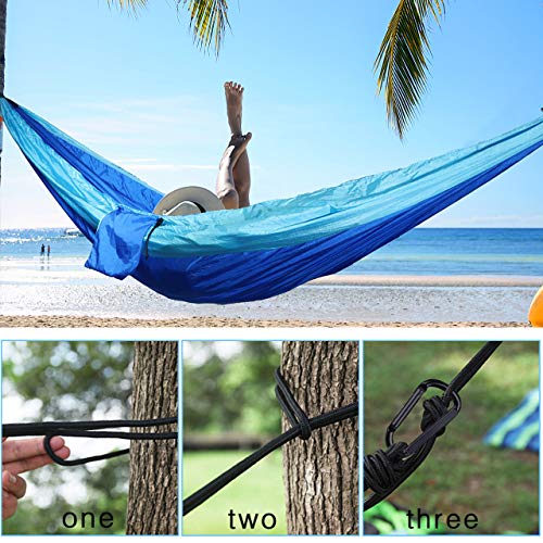 - 【HAMMOCK PER 2 PERSONE】 260 * 140 cm Amaca da Viaggio, il massimo può trasportare 300 kg. Offriamo funi annodate, coperture per funi, moschettoni 2 * come accessori regalo. Anche i moschettoni sono stati migliorati, non fanno male alle corde.
