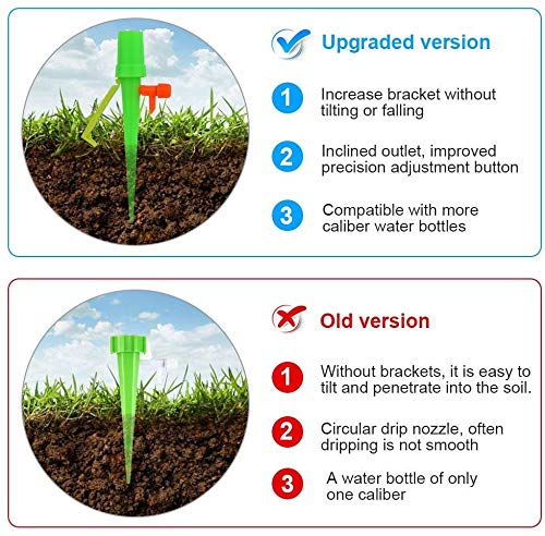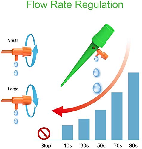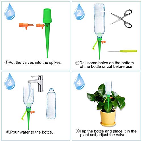 - Facile da installare: non sono necessari attrezzi per l'installazione, basta praticare alcuni fori nella parte inferiore della bottiglia o tagliare la coda della bottiglia per mantenere il flusso d'aria. Accurato volume dell'acqua, fornisce diverse quantità di acqua per diverse piante e fiori, ogni pianta è unica.