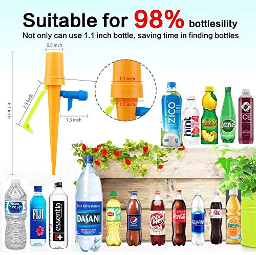 - Durevole e adatta alla maggior parte delle bottiglie: questo sistema di irrigazione per piante è realizzato in plastica ABS. Un prodotto ecologico e approvato dal reparto per la tutela dell'ambiente. Alta qualità significa che ogni picchetto ha una durata di oltre un anno. Lampadine per irrigazione con angolo smussato per adattarsi alla maggior parte delle bottiglie di marchio: Dr.pepper, Pepsi, Coca Cola, Lipton, Deet Coke, Aqufina o altre bottiglie.
