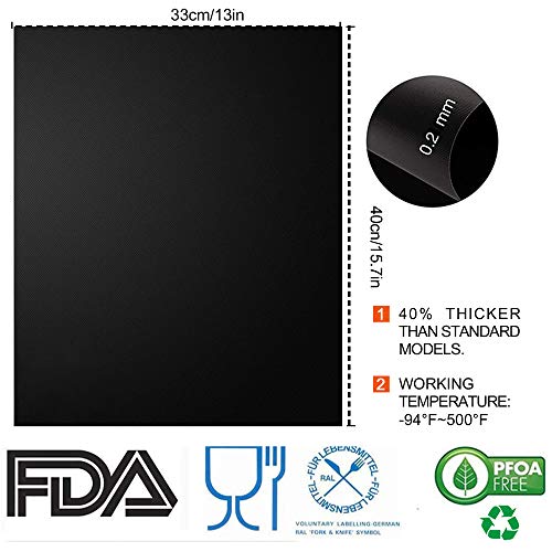 - OMOLOGAZIONE LFGB & FDA: I nostri tappetini per barbecue sono realizzati al 100% con materiali senza PFOA e con rivestimento in PTFE-fibra di vetro di alta qualità, senza PFOA, silicone o altri prodotti chimici pericolosi! Certificato come sicuro dalla FDA e LFGB approvato.