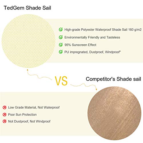 - ♥ Materiale impermeabile in poliestere di alta qualità: parasole per sole realizzato in poliestere impermeabile di alta qualità, 160 g / m2, ecologico e insapore, protezione solare al 95%, impregnazione in PU, vela parasole resistente alla polvere e al vento.