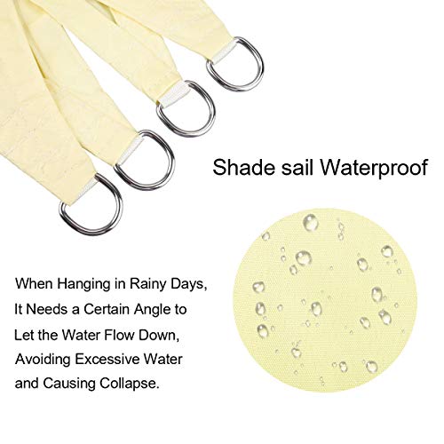 - ♥ Nota: la vela ombra è in tessuto di poliestere impermeabile. Quando è appeso, ha bisogno di un certo angolo per far scorrere l'acqua verso il basso, in modo da evitare danni al prodotto causati da troppa acqua! Si prega di installare in un angolo per che l'acqua piovana scappa.
