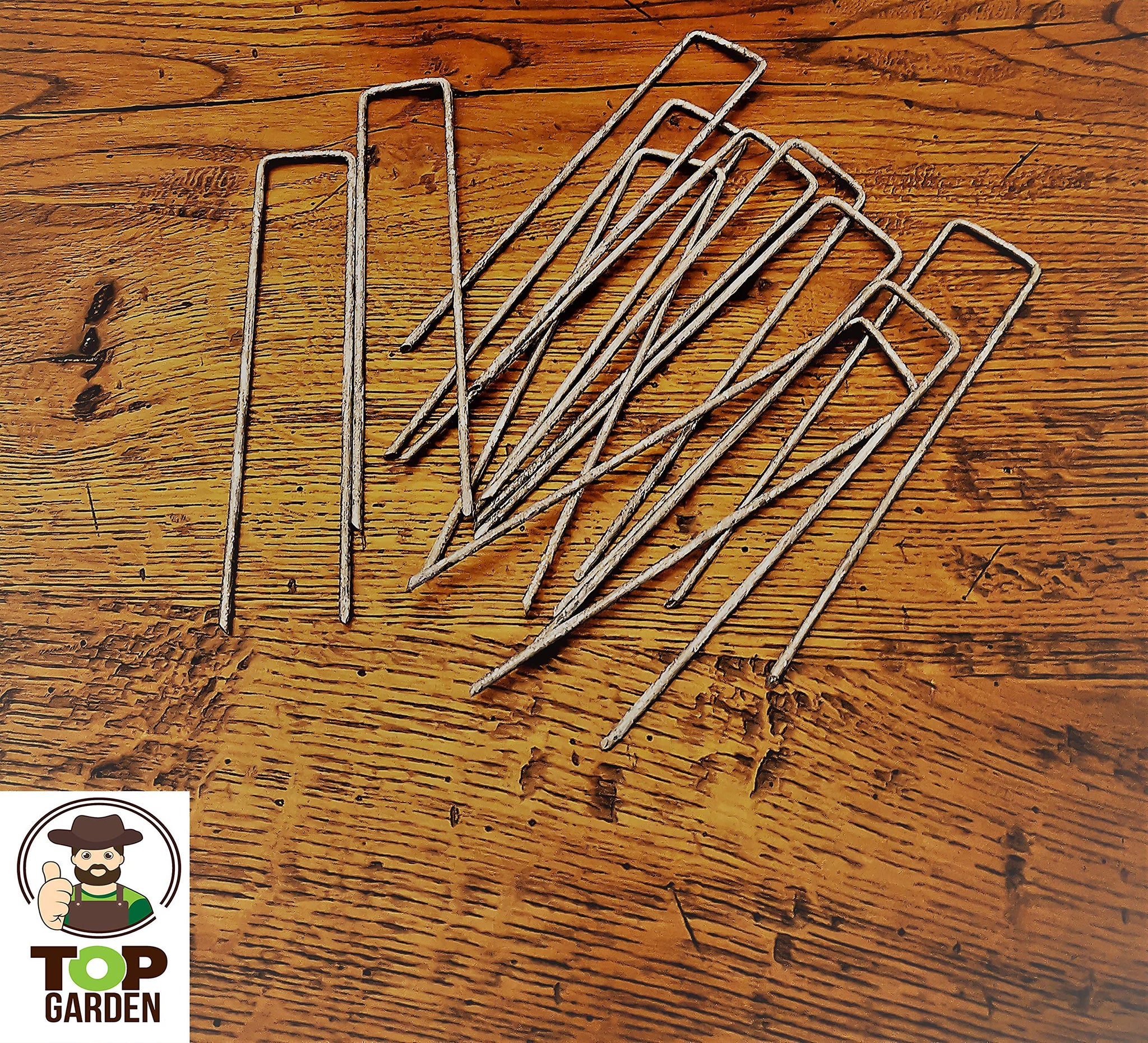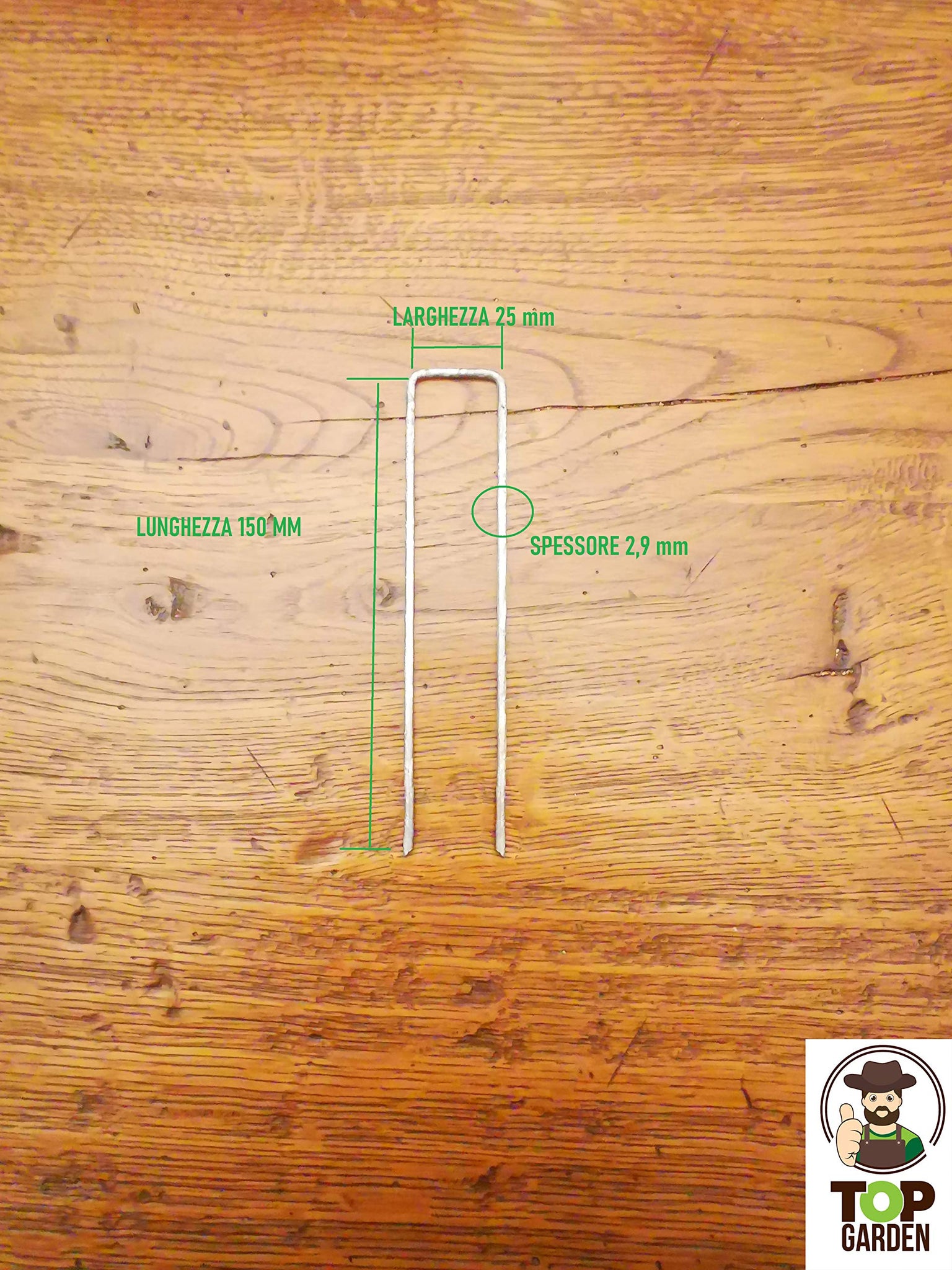 TOP GARDEN Picchetti Telo PACCIAMATURA e Telo per Pacciamatura, 100 Picchetti Zincati, per Serra da Giardino e Prato in Erba Sintetica per Giardino, Lunghezza 150, Larghezza 25 mm e Spessore 2,9 mm
