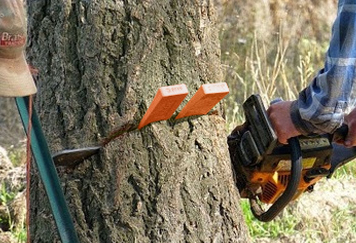 Prendi il cuneo con il bordo! Un must-have strumento per abbattere un albero, più sicuro e più facile.