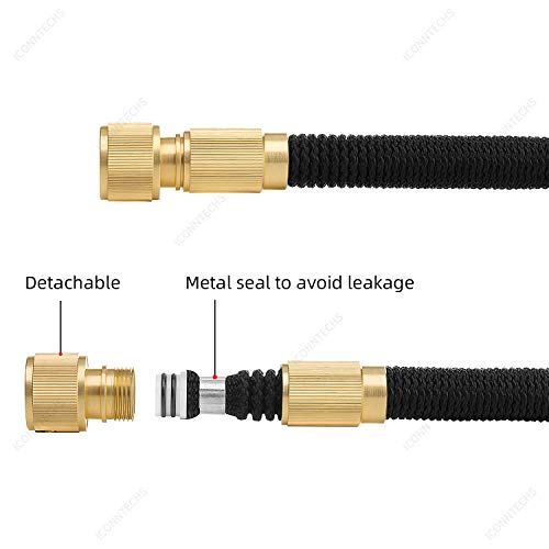 Tubo da Giardino Estensibile 15M/50FT, Raccordi in Ottone 50FT-Black