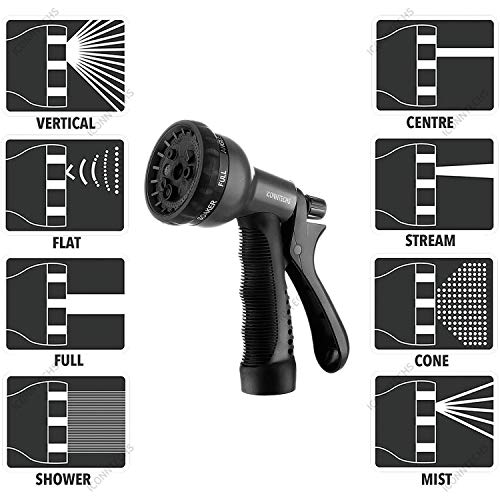 - UGELLO CON 8 FUNZIONI DI SPRUZZO - il resistente ugello per tubo flessibile in lega di zinco, con esterno in gomma antiscivolo, offre 8 diversi varianti per soddisfare tutte le esigenze di irrigazione.